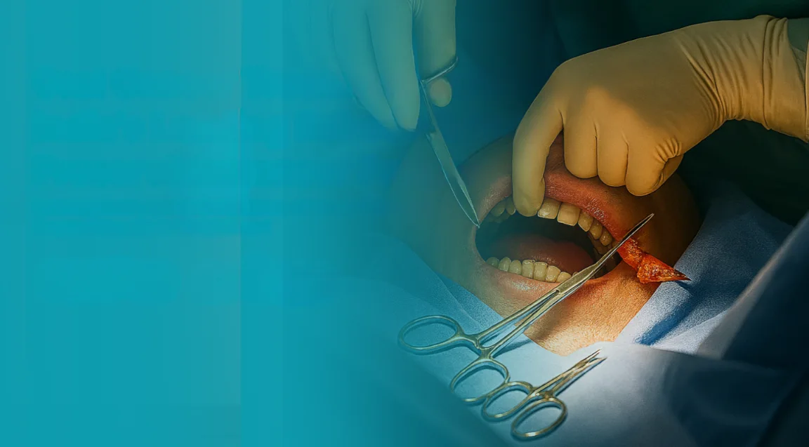 • Wide local excision of tumors from cheek, jaw, tongue, or gums
